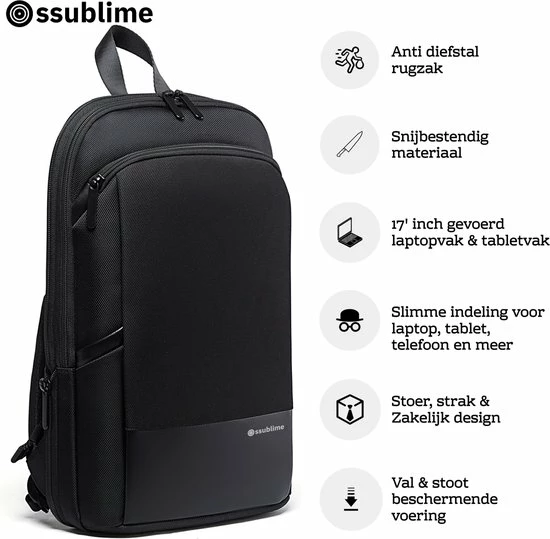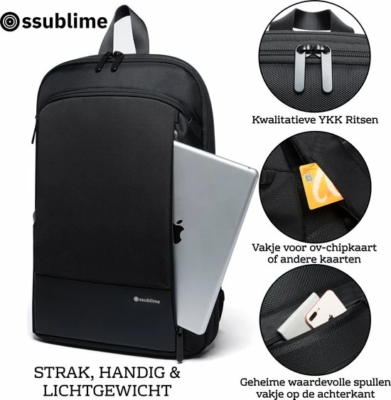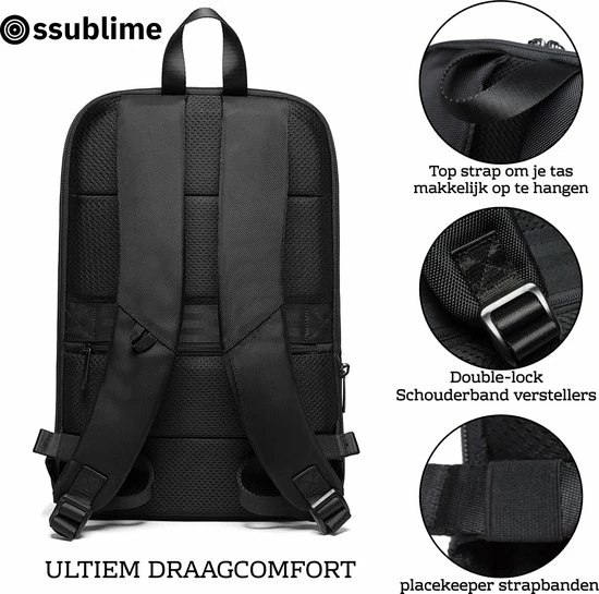 De rugtas is comfortabel door de zachte en ademende schouderbanden en padding op de rug. Door het mesbestendige polyester hebben zelfs de beste dieven geen kans meer!