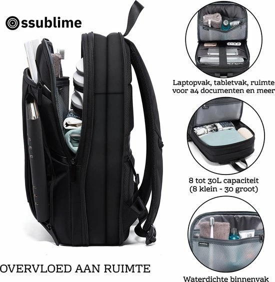 De rugzak is perfect dagelijks te gebruiken als schooltas, maar ook zakelijk als laptoptas tijdens business trips. Hou ‘m klein voor als je alleen je laptop mee neemt. Met een simpele ritsbeweging vergroot je de tas van 8 naar maar liefst 30 liter! Met de grote capaciteit is er altijd ruimte voor al je boeken, kleren en apparatuur. In het hoofdcompartiment zitten slimme kleine compartimenten om je spullen overzichtelijk op te bergen.