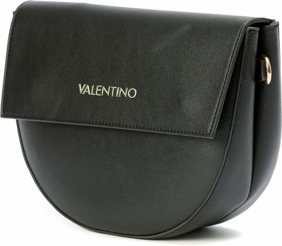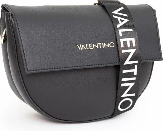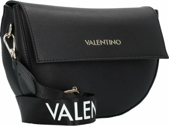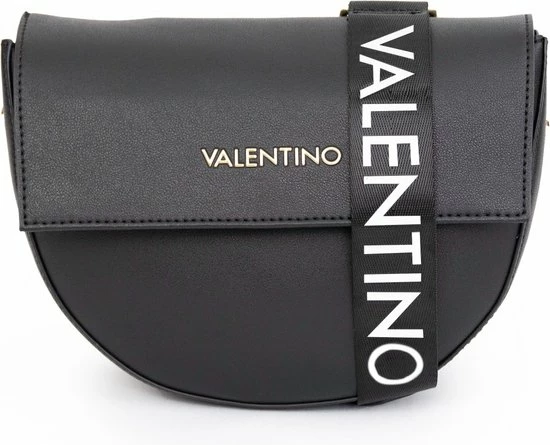 Wat een beauty is deze crossbodytas van Valentino Bags . Hij komt uit de Bigs collectie, die in verschillende kleuren beschikbaar is, waaronder deze kleur zwart. De tas heeft een ronde vorm met een flap en sluit doormiddel van een magneetknop. Op de flap van de tas staat met gouden letters โValentino Bags โ en dit geeft de tas een erg luxe uitstraling. Bij de tas zit een afneembare en verstelbare brede schouderband, gemaakt van stof. Ook op de schouderband zijn de woorden โValentino Bags โ te lezen in witte letters