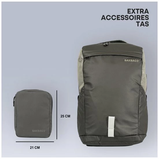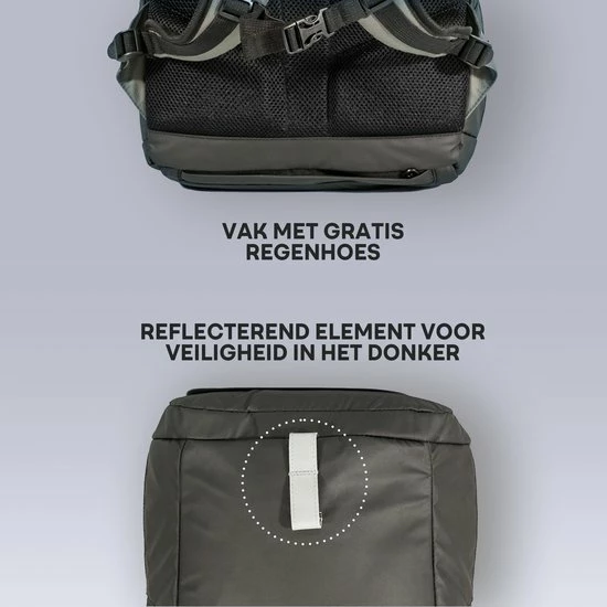 Er wordt een bijpassend tasje meegeleverd dat op verschillende manier is te gebruiken. De fietser stopt er zijn noodgereedschap in, de zwemmer zijn douchespullen en de reiziger zijn opladers en adapters. .Daarnaast zit er in het onderste vak een regenhoes die je om de tas heen kan doen. Deze zit vast zodat je hem niet kwijt kan raken .Door extra padding in de rug toe te voegen is onze rugtas enorm comfortabel en wordt het gewicht van de tas goed verdeeld. Last but not least zit de rugzak verpakt in weer een andere tas welke je er ook gratis bij krijgt!