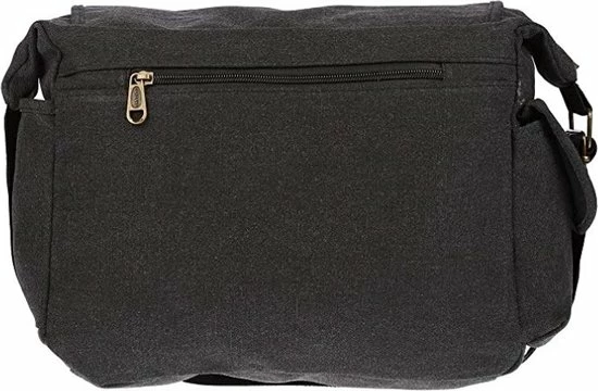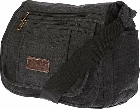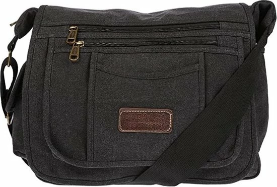 Grote canvas schoudertas in het zwart, geschikt voor dames en heren. Dit is een A4 formaat schoudertas, boeken en mappen passen hierin. Een schoudertas met veel vakken, zo kan alles eenvoudig ingedeeld worden naar keuze. Het is een grote messenger bag met overslag en ritssluiting, dit is extra veilig. Dit is een schoudertas geschikt voor werk, school of dagelijks gebruik. Je hebt altijd je handen vrij en de lange band is verstelbaar. Voordeel van canvas is dat het licht in gewicht is, en eenvoudig mee te nemen doordat het plat en opvouwbaar is.