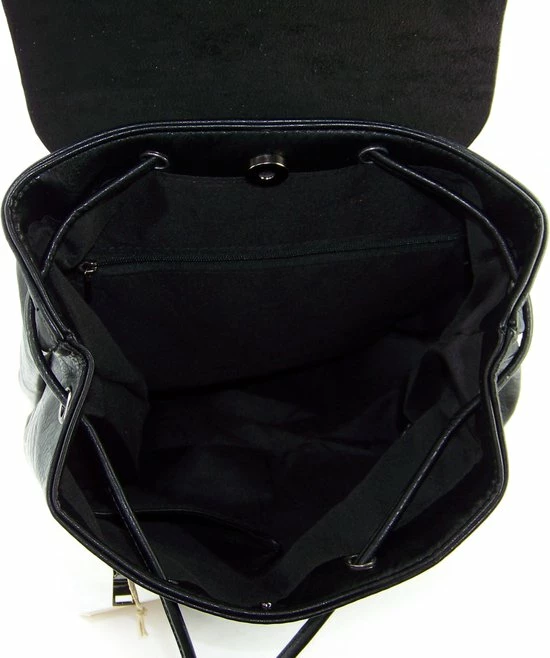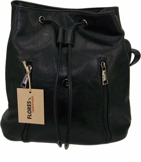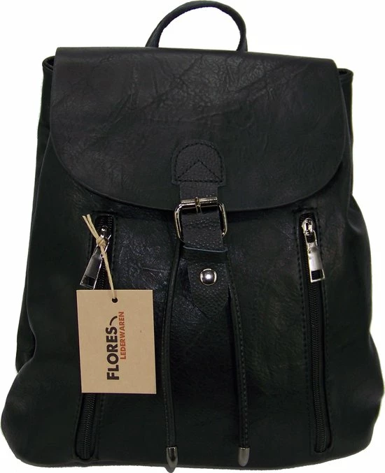 Soepele zwarte leren rugzak van het huismerk Flores Lederwaren. Gemaakt van Italiaans kwaliteitsleer. Een fijn ontwerp met heerlijk draagcomfort. Ruim genoeg om alle belangrijke spullen mee te nemen en gemakkelijk te openen en te sluiten door de trekveter met metalen stopjes en sluitlip met magneet.