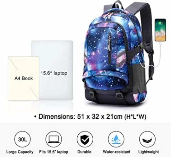 Verhuizen naar school of kantoor wordt gemakkelijker met onze Galaxy computerrugzak, die de laptop van 14 tot 15,6 inch kan houden. Bovendien maakt de handige en redelijke interne structuur van de schooltas: 2 hoofdcompartimenten en 9 zakken, uw boeken, uw school- of kantoorbenodigdheden en dagelijkse benodigdheden in goede staat.