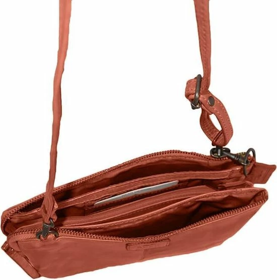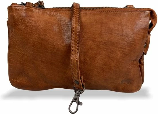 Mooie kleine leren schoudertas uit de Cow Lavato serie van Bear Design. De tas is afsluitbaar met een rits. Binnenin zitten 3 vakken waarvan het middelste vak afsluitbaar is met een rits. In de tas zitten 6 sleufjes voor pasjes. Met de afneembare, lange verstelbare schouderband kun je de tas op de door jou gewenste lengte over de schouder of schuin over het lichaam (crossbody) dragen.