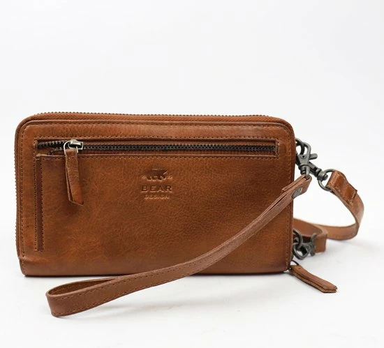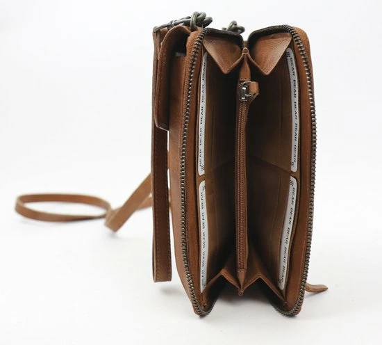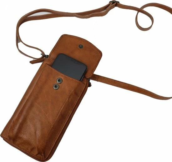 - Leren telefoontasje met ritsportemonnee op achterzijde