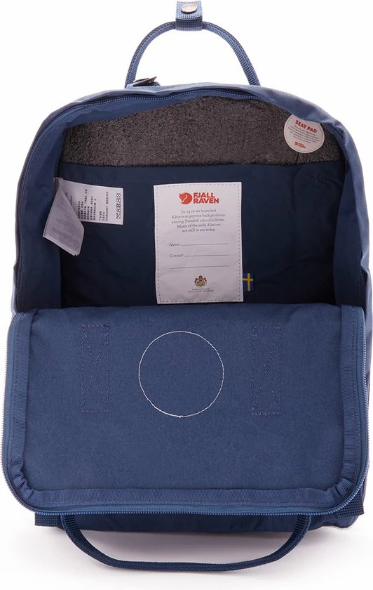 Klassieke KΓ₯nken rugzak van sterke Vinylon stof met een rits waarmee je het volledige hoofdvak kunt openen. Verwijderbaar zitkussen, klein voorvak, eenvoudige schouderbanden en handgrepen aan de bovenkant.