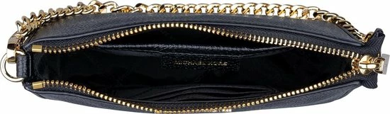 Heb jij geen zin om een grote crossbodytas mee te slepen als je ergens heengaat? Dan is deze kleine stijlvolle Michael Kors handtas in de kleur zwart de ideale tas. De Michael Kors Pouchette Clutch is dan ook onmisbaar in jouw tassencollectie. De tas bestaat uit een met rits afsluitbaar compartiment, hierin is ruimte voor het opbergen van drie pasjes en er is een opbergvak aanwezig, wat zorgt voor overzicht in deze kleine tas. Op de voorkant van de tas is een 3D logo van Michael Kors aanwezig..Kenmerken:- Stijlvolle Michael Kors tas- Zwarte voering met Michael Kors print- Goudkleurige details