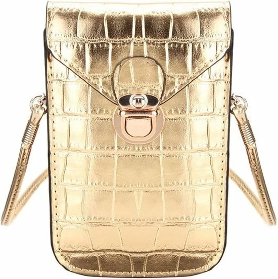 Ben jij opzoek naar een handig tasje voor je telefoon? Dan is dit smartphone tasje ideaal! Erg hip door de croco print en de goudkleurige details! Dit telefoontasje is een echte musthave!