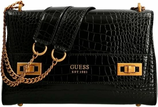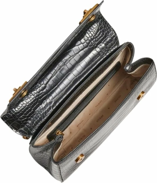 Nieuw 𧨠Beste Verkoop β¨ Guess Katey Croc Flap Shoulder Dames Handtas – Zwart β€οΈ π€©
