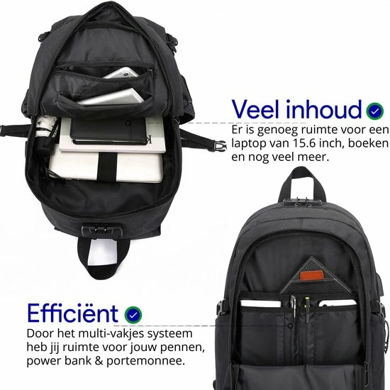Let op een powerbank is niet inbegrepen bij de rugzak.