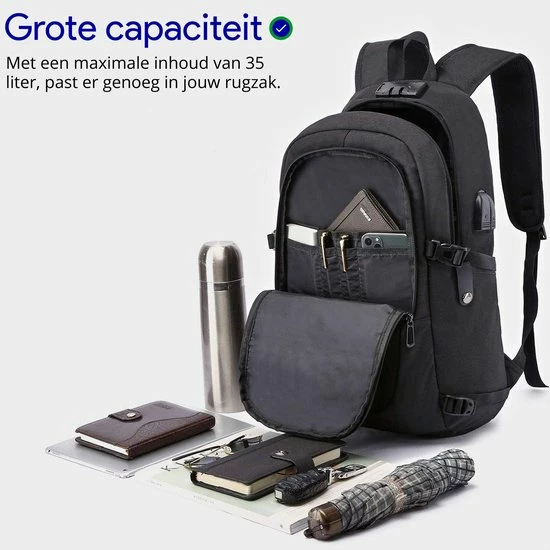 Deze rugzak is speciaal ontworpen met dubbele anti-diefstal rits om het zakkenrollers zo moeilijk mogelijk te maken. Deze rits is vele malen steviger dan een normale rits. Hierdoor voel je direct wanneer iemand je tas probeert open te maken. Daarnaast gaan de ritsen een stuk langer mee als reguliere ritsen.