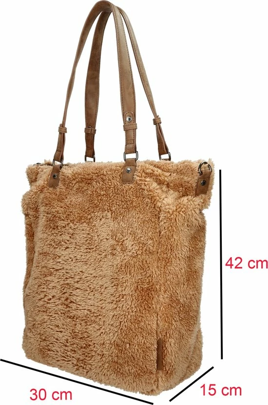 Korting ❀️ Coupon πŸ”” Enrico Benetti Teddy Tas Met Rits – Langere Schouderband – Fluffy Zachte Shopper | Cognac βŒ› πŸ””