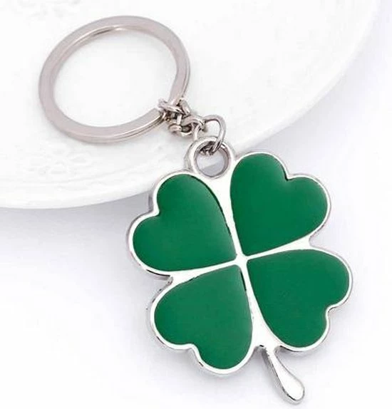 Help het geluk een handje met deze fraaie grote sleutelhanger van metaal met groen emaille.