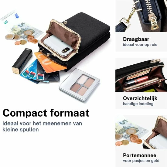 Dames telefoontasje met portemonnee van ZILOU®; deze compacte crossbody tas is ideaal voor het meenemen van je telefoon, pasjes, contant geld, cosmetica en andere kleine spullen