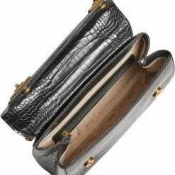 Nieuw ๐งจ Beste Verkoop โจ Guess Katey Croc Flap Shoulder Dames Handtas – Zwart โค๏ธ ๐คฉ