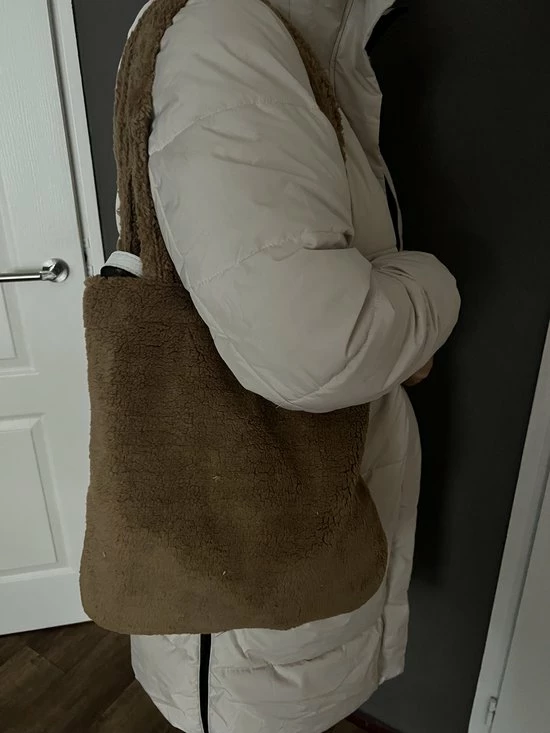 leuke teddy schoudertas, staat op ieder outfit mooi. je kan er mee uit maar de boodschappen passen er ook prima in. De tas is met de rits afsluitbaar.