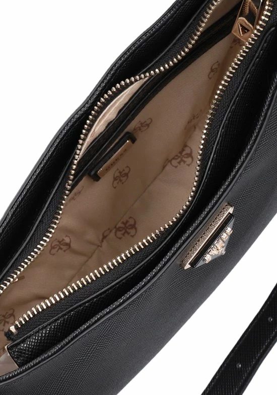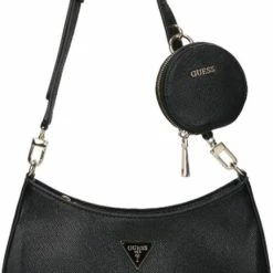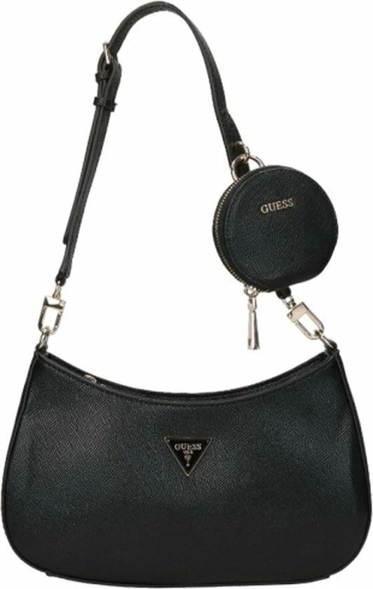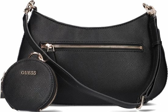 Het wordt weer zomer en dat wordt weer flaneren over de boulevard met jou nieuwe Guess tas uit de collectie Alexie. Neem nou dit snoepje in zwart. Een cutie gemaakt van imitatieleer met een verfijnde leerstructuur. Wat meteen opvalt is het kleine portemonneetje voor wat klein losgeld aan de schouderband. Handig is het ritsvakje aan de achterzijde om snel iets in op te bergen. Alles is prachtig afgewerkt. Het is niet voor niets een Guess tas met shiny goudkleurig hardware en metalen logo-tjes. We love it!