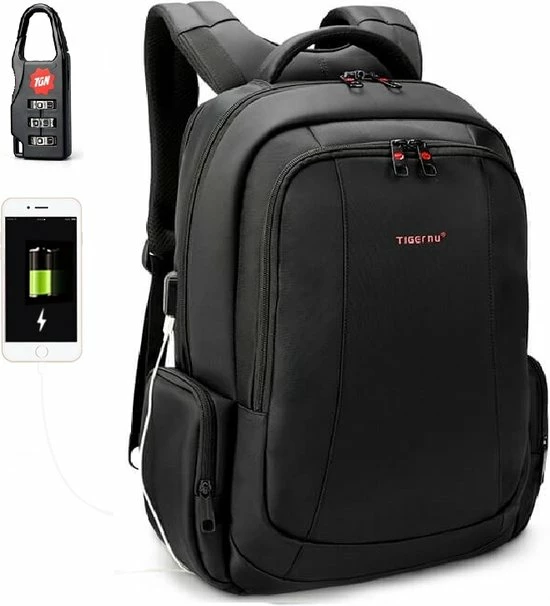 Op zoek naar een laptop rugzak of schooltas van hoge kwaliteit, veel draagcomfort en welke u overal een veilig gevoel geeft? Deze multifunctionele laptop rugzak of schooltas is voorzien van een laptop vak, anti diefstal ritsen, een usb functie en heeft voldoende ruimte voor al u eigendommen. De rugtas is gemaakt van een snijbestendige binnenkant, voorzien van geheime vakken en word geleverd met een GRATIS cijferslot en regenhoes. Hierdoor is het voor zakkenrollers onmogelijk om ongezien u waardevolle spullen te stelen. Dit alles maakt de Tigernu Daily zwart een ideale rugzak / schooltas om dagelijks naar werk, school of op vakantie te gaan.