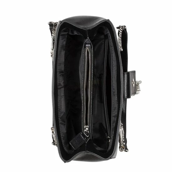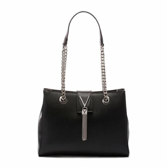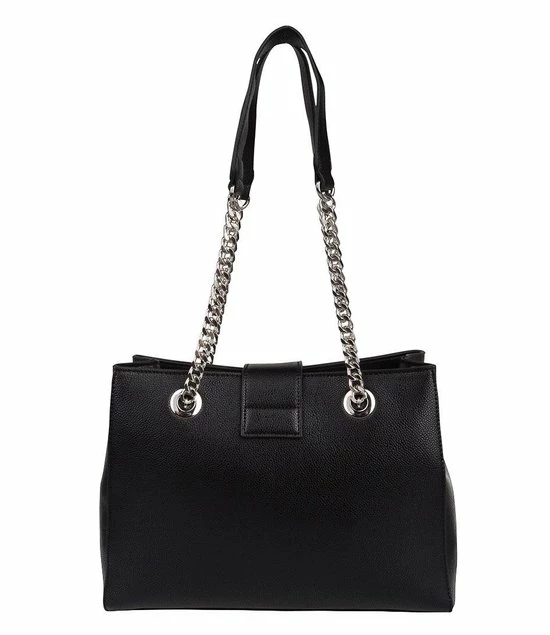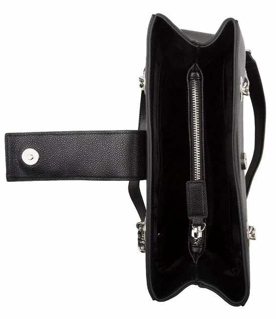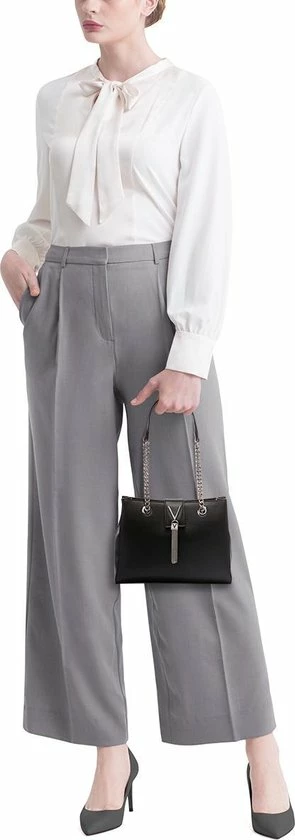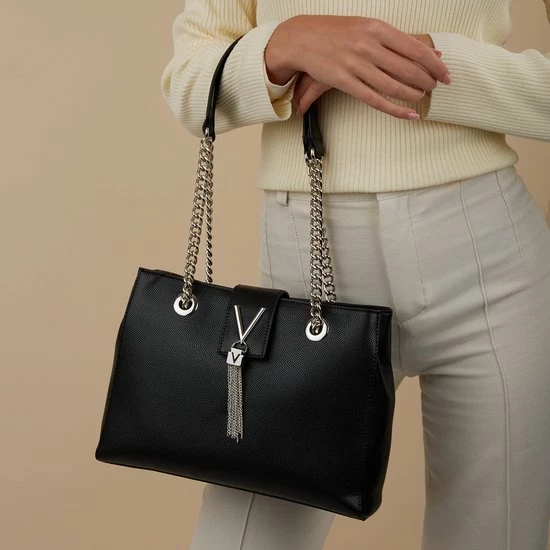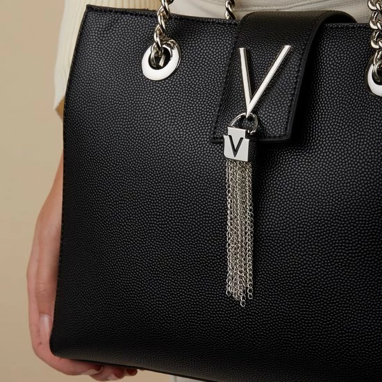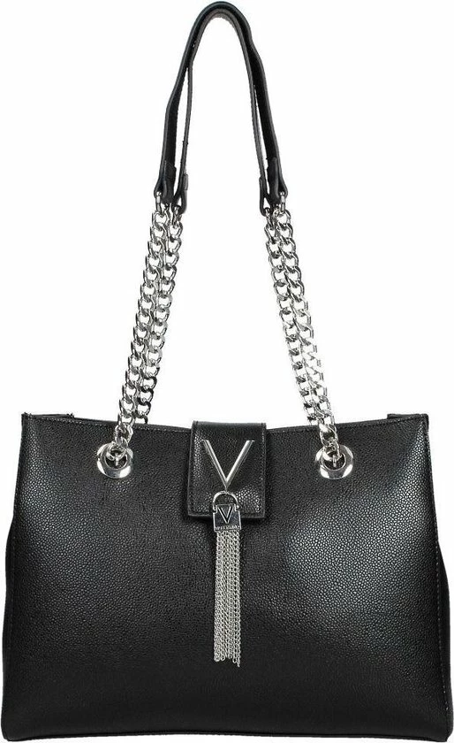 Ga va-va-voom de deur uit met deze Valentino Bags tas. Stijlvol, modieus รฉn opvallend; deze Divina tas heeft het echt allemaal. Je kunt hem over je schouder dragen maar natuurlijk ook aan de hand. De schakelketting en het logo op de voorkant geven de tas de blingy finishing touch die we van Valentino Bags gewend zijn. Daarnaast is hij in de kleur zwart natuurlijk overal mee te combineren, super handig dus! De tas zelf is aan de binnenkant opgedeeld in drie compartimenten waarvan de voorste en achterste open zijn en de middelste een ritssluiting heeft. De buitenste compartimenten kunnen wel meer naar elkaar gesloten worden dankzij de magneetsluiting onder de dunne flap waar het logo op bevestigd zit. Je daily essentials kun je goed opbergen in de twee steekvakken en de twee ritsvakken. Als dit de perfecte tas niet is, dan weten wij het ook niet meer!