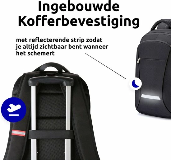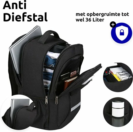 Deze rugzak is speciaal ontworpen met dubbele anti-diefstal rits om het zakkenrollers zo moeilijk mogelijk te maken. Deze rits is vele malen steviger dan een normale rits. Hierdoor voel je direct wanneer iemand je tas probeert open te maken. Daarnaast gaan de ritsen een stuk langer mee als reguliere ritsen.