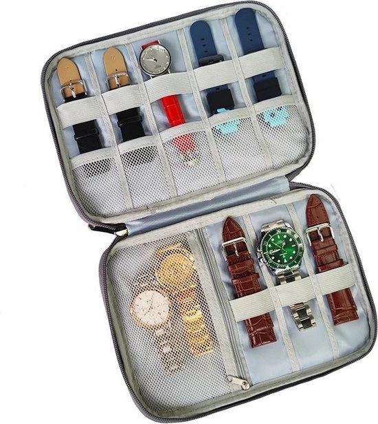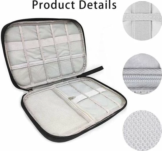 Met deze multifunctionele opbergtas heb je je elektronica accessoires altijd netjes opgeborgen en direct bij de hand als je ze nodig hebt. De opbergtas is geschikt voor het opbergen van 20 horlogebandjes voor je favoriete smartwatch of horloge, maar ook ideaal voor het organizeren en opbergen van je kabels, opladers, Airpods, oortelefoons of andere accessoires.