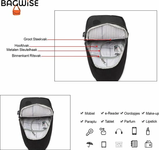 – 4 rits/vakken om uw spullen veilig en droog te kunnen beschermen inclusief een anti-diefstal rits/vak.