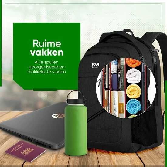 De stevige rugtas heeft een apart laptopvak voor een iPad, laptop (formaat tot 15,6 inch), portemonnee, kleding, flessen, telefoonaccessoires, paraplu en diverse items. Door de verschillende vakken zijn je items georganiseerd en makkelijk te vinden.