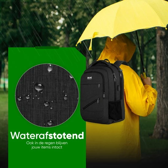 De 15,6-inch rugzak is gemaakt van waterbestendig en milieuvriendelijk polyester met metalen ritsen. De rugzak is perfect voor zakenreizen, kantoorwerktas en geschikt voor buitenactiviteiten. De tas is ook geschikt als schooltas voor jongens en meisjes.