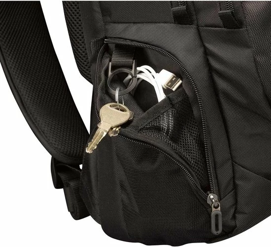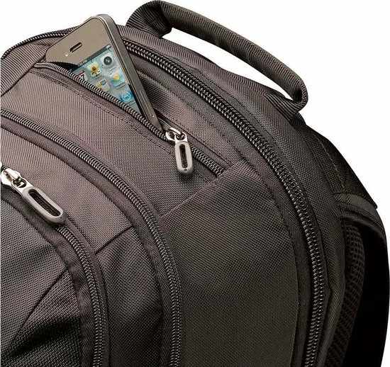 De rugzak beschikt over een vak met opening aan de bovenkant met een pluche voering, zodat je zonnebril of smartphone niet platgedrukt of bekrast wordt. In het voorvak zitten speciale opbergvakjes voor visitekaartjes, pennen, een iPod, een smartphone en usb-sticks.