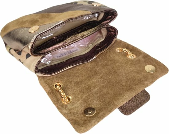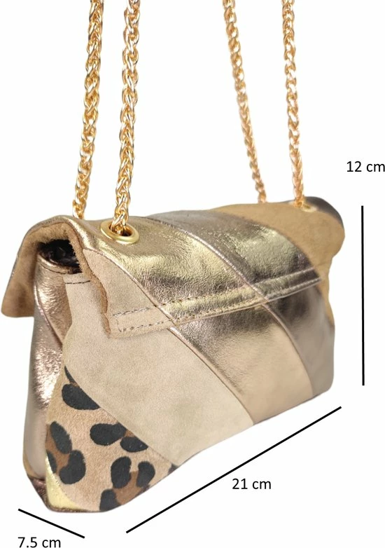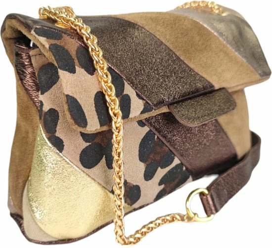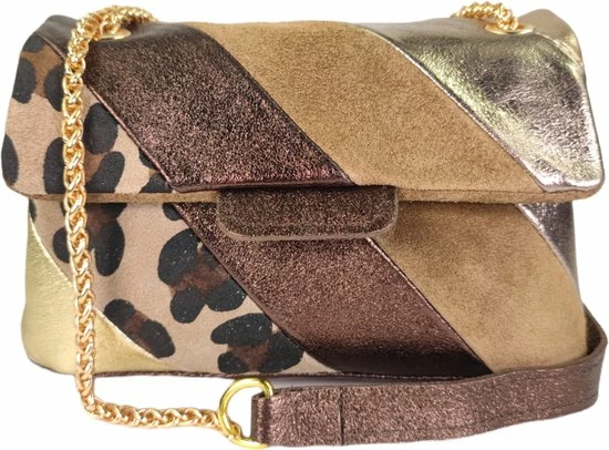 Lederen rainbow schoudertas met 2 vakken . De schouderband is van leer en ketting. (De ketting is goudkleurig)