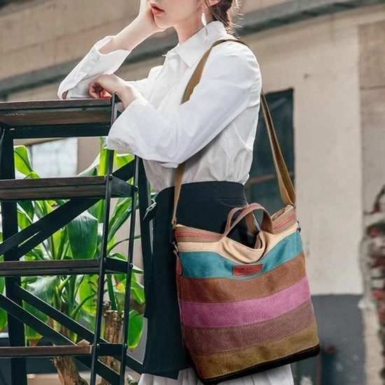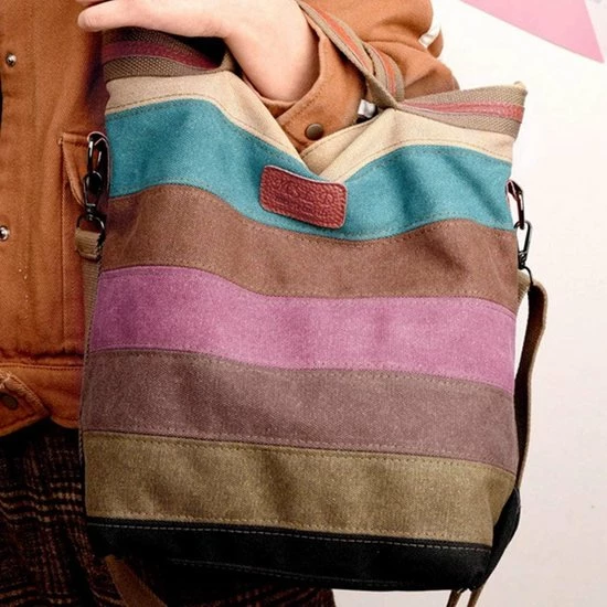 β‘οΈ Met deze Miss Lulu handtas Γ©n schoudertas laat je zien dat je praktisch heel goed kunt combineren met stijl. Deze stevige canvas tas is voorzien van een prachtig design in de zachte kleuren van de regenboog. De vintage look geven deze tas nog meer uitstraling en allure. Deze handtas van Miss Lulu is gemaakt van hoogwaardig canvas. Dat betekent dat deze ruime damestas wel tegen een stootje kan. Je gebruikt hem lekker casual tijdens een dagje shoppen, maar ook tijdens een bezoek aan kantoor.