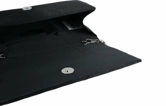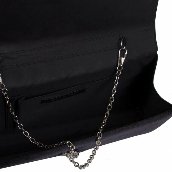 Ga stijlvol op pad met de Bulaggi clutch van Bulaggi. Deze chique clutch in de kleur zwart is gemaakt van een glanzende satijne stof. Gegarandeerd dat jij de show steelt met deze shiny tijdloze musthave! Ben je van plan om een dansje te gaan wagen? Ook daar is aan gedacht! Aan de zijkant van de tas is een handige afneembare schouderriem bevestigd. Voeg deze eyecatcher toe aan je feestoutfit!