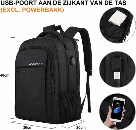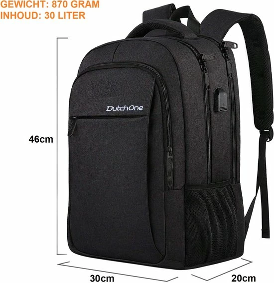 Gevonden! Stop met zoeken. De luxe Laptop Rugzak van DutchOne is uitstekend te gebruiken voor school, reis, werk en vakantietripjes. De rugtas is waterafstotend en voorzien van alle gemakken. Met een handige USB-poort aan de zijkant, gewatteerde schouderbanden en opbergvakken voor al je items ben je klaar voor elk avontuur!