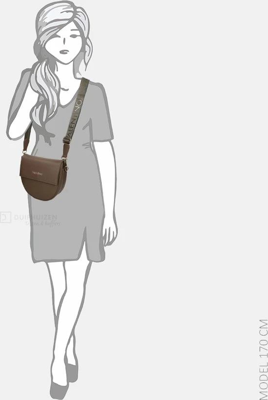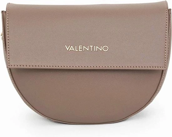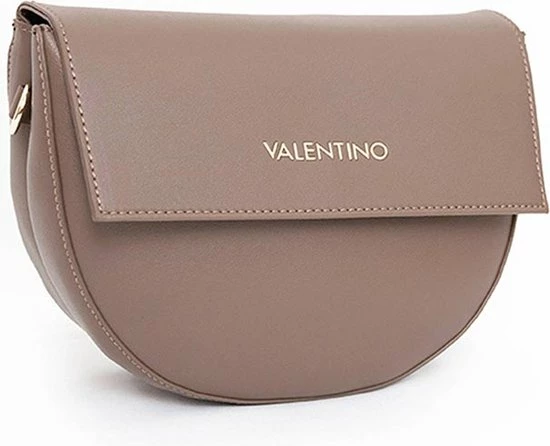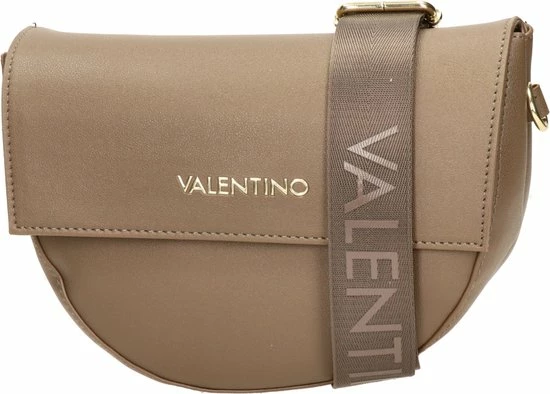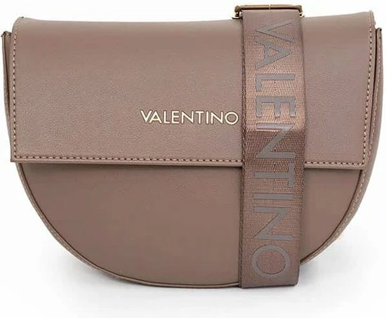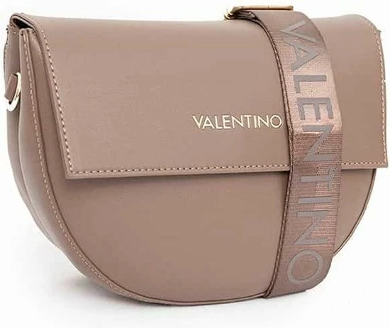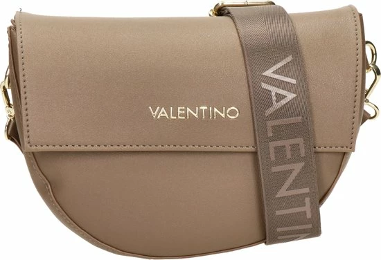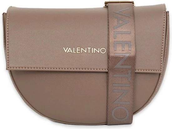 Wat een beauty is deze crossbodytas van Valentino Bags. Hij komt uit de Bigs collectie, die in verschillende kleuren beschikbaar is, waaronder deze kleur taupe. De tas heeft een ronde vorm met een flap en sluit doormiddel van een magneetknop. Op de flap van de tas staat met gouden letters โValentino Bagsโ en dit geeft de tas een erg luxe uitstraling. Bij de tas zit een afneembare en verstelbare brede schouderband, gemaakt van stof. Ook op de schouderband zijn de woorden โValentino Bagsโ te lezen in bijna dezelfde kleur als de schouderband.
