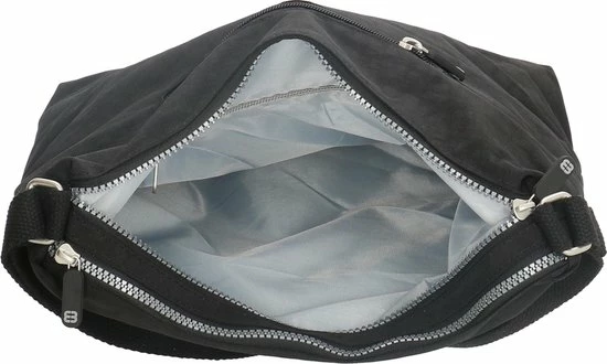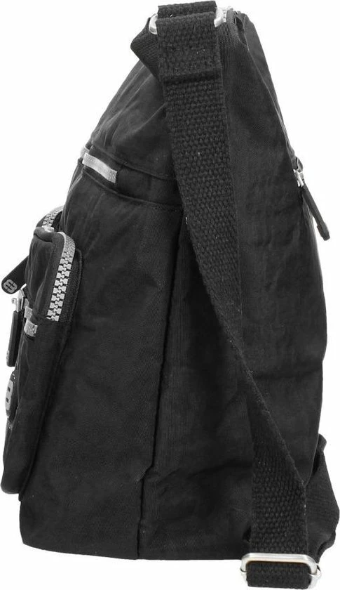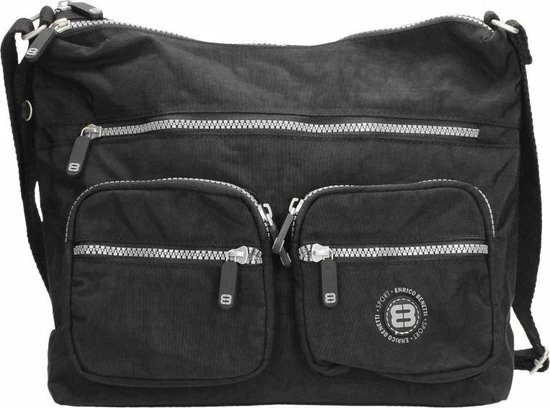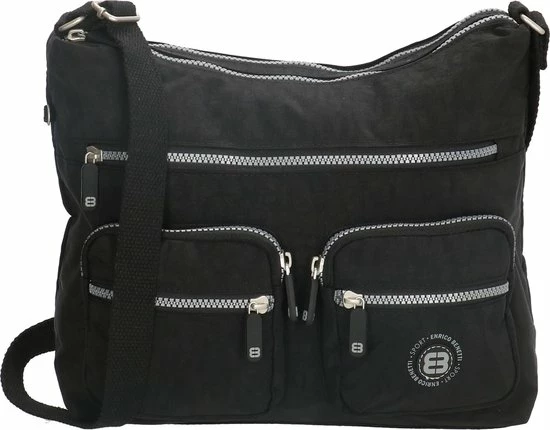 Met deze schoudertas uit de crinkle nylon serie Frances van Enrico Benetti heb je genoeg opbergvakjes om al je spullen op te bergen. De tas heeft twee hoofdvakken, maar liefst vijf voorvakken – waarvan vier klein – en een achtervak, allemaal met ritssluiting. In de hoofdvakken zitten ook nog steekvakken en een extra ritsvak. De schoudertas is afgewerkt met grove contrasterende kunststof ritsen en sportieve rubberen details. De schouderband is van mooi mee gekleurd katoen en is verstelbaar. De schoudertas is verkrijgbaar in mooie basic kleuren en er zijn binnen de Frances serie ook andere schoudertassen, een heuptas en rugtassen beschikbaar.