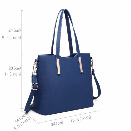 Deze Miss Lulu 3-delige tassenset is gemaakt van sterk kunstleer en voorzien van handige details. Hierbij kun je denken aan een verstelbare en afneembare schouderriem. Daarmee kun je de middelste tas ook als cross-body bag gebruiken. Deze schoudertassen neem je mee naar vrijwel elke gelegenheid. Dat kan zakelijk zijn, maar zeker ook casual of tijdens een reis. De stijlvolle vormgeving van deze Miss Lulu tassen set zorgt ervoor dat je de tassen kunt dragen bij elke outfit. De afmetingen van de schoudertassen variΓ«ren (zie specificaties). Met deze leuke set tassen kun je dus altijd over voldoende ruimte beschikken voor al jouw persoonlijke spullen.