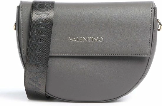 Wat een beauty is deze crossbodytas van Valentino Bags . Hij komt uit de Bigs collectie, die in verschillende kleuren beschikbaar is, waaronder deze kleur zwart. De tas heeft een ronde vorm met een flap en sluit doormiddel van een magneetknop. Op de flap van de tas staat met gouden letters βValentino Bags β en dit geeft de tas een erg luxe uitstraling. Bij de tas zit een afneembare en verstelbare brede schouderband, gemaakt van stof. Ook op de schouderband zijn de woorden βValentino Bags β te lezen in witte letters