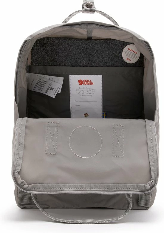 Klassieke KΓ₯nken rugzak van sterke Vinylon stof met een rits waarmee je het volledige hoofdvak kunt openen. Verwijderbaar zitkussen, klein voorvak, eenvoudige schouderbanden en handgrepen aan de bovenkant.