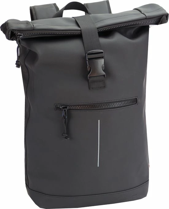 Stoere waterafstotende laptop rugzak uit de Mart serie van New Rebels. De rugzak is gemaakt van tarpaulin. Dit waterafstotende materiaal zorgt er voor dat de tas tegen een stootje kan en jouw eigendommen droog blijven tijdens verschillende weersomstandigheden. De reflectiestreep op de voorkant zorgt er voor dat je goed zichtbaar bent tijdens donkere dagen. Het ruime hoofdvak is afsluitbaar middels een ritssluiting en TT (schuif/klik-sluiting) en is oprolbaar ofwel qua volume wat te vergroten danwel te verkleinen. Binnenin zit een extra ritsvakje en een gewatteerd laptopvak van 37 x 27 x 4 cm geschikt voor een 15,5 inch laptop. Op de voorzijde van de tas zit een ritsvak waarin je spullen kwijt kunt die je snel bij de hand wilt hebben. Het rugpand en de verstelbare schouderbanden zijn gewatteerd voor optimaal draagcomfort. Met de lus aan de bovenkant kan de tas makkelijk opgepakt worden of in de hand gedragen worden.