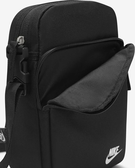 Zwarte Nike Heritage Crossbody schoudertas. Het tasje heeft een hoofdvak met rits en een verstelbare schouderband. De afmetingen zijn 23 x 18 x 8 cm. De tas heeft een inhoud van 4 liter.