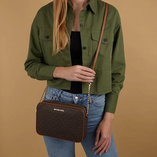 Jet set LG klassieke dames crossbody tas in de kleur bruin uit de nieuwe collectie van Michael Kors. De tas is voorzien van een all-over logo print en beschikt over een subtiel merklogo aan de voorzijde. De tas beschikt over een verstelbaar hengsel en is makkelijk te combineren met iedere outfit.