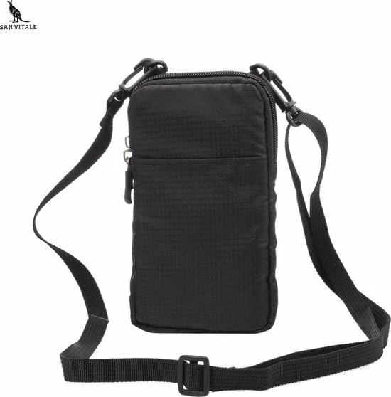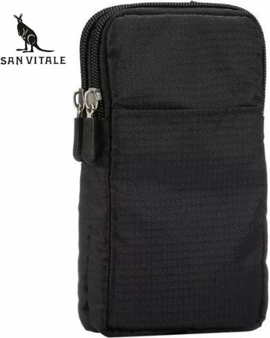 Compact, voorzien van twee ruime vakken die afsluitbaar zijn met een rits. Ideaal voor het opbergen van geld, sleutels, benodigdheden als een powerbank voor onderweg of persoonlijke accessoires. De voorzijde is voorzien van een extra vakje voor telefoon met quick-release gesp sluiting en biedt tevens ruimte voor een pen of een kleine zaklamp. Dankzij de elastische band aan de achterzijde bevestigt u het tasje aan uw riem zodat deze niet snel gestolen kan worden. De heuptas heeft een compact formaat van 12 x 6 x 17,5 cm en is gemaakt van stevig, waterdicht nylon. Een ideale tas voor op reis of voor allerlei buitenactiviteiten!