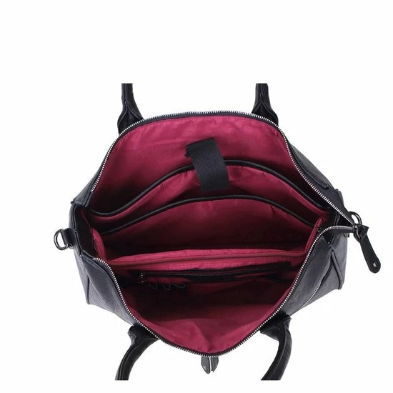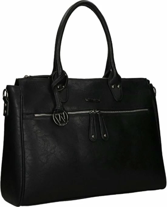 Deze Fabiana-Two schoudertas / laptoptas van Wimona is een zeer ruime tas waarin A4 documenten passen en waarin je tevens je laptop kwijt kunt. Door de vele vakken heeft deze tas een praktische indeling. Het hoofdvak is afsluitbaar middels een ritssluiting. Aan de binnenzijde heeft de tas een tussenschot met ritssluiting, een organisatiepaneel, telefoonvakje, ritsvakjes en penvakjes. Tevens zit in de tas een gewatteerd laptopvak voor max. een 15,6 inch laptop en een insteekvak voor een iPad of tablet. De tas kan in de hand gedragen worden met de stevige handvatten of over de schouder met de lange verstelbare, afneembare schouderband. Op de voorzijde en op de achterzijde van de tas zit een groot ritsvak.